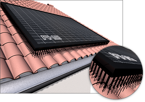 Die PV-Spikes sind speziell für die seitlich umlaufende Montage an Photovoltaik- und Solarthermie-Panels konzipiert, um das Unterkriechen von Tauben unter die Panels zu verhindern.
